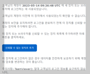 계정에 등록된 이메일로 자동 송부된 메일을 확인하여 원격을 할 장치와 받을 장치 둘다 추가를 한다.